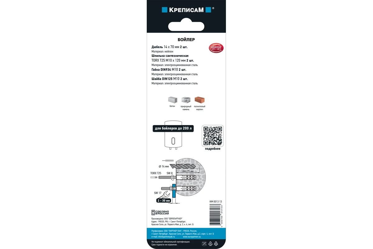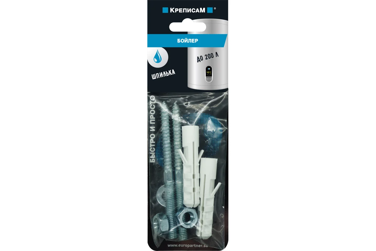 Сантехническая шпилька позволяет использовать набор в случае, где необходим надежный прижим монтажной планки бойлера.