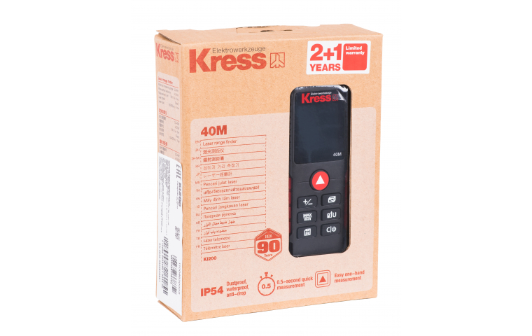 Kress KI200 — надежный инструмент для выполнения точных лазерных измерений. Дальномер позволяет измерять расстояния с точностью ± 2 мм и углы ± 3 ° с диапазоном от 0,2 до 40 м. Емкость памяти — 30 значений избавит вас от необходимости записывать результаты измерений. Лазерный диод — 630-670 Нм.