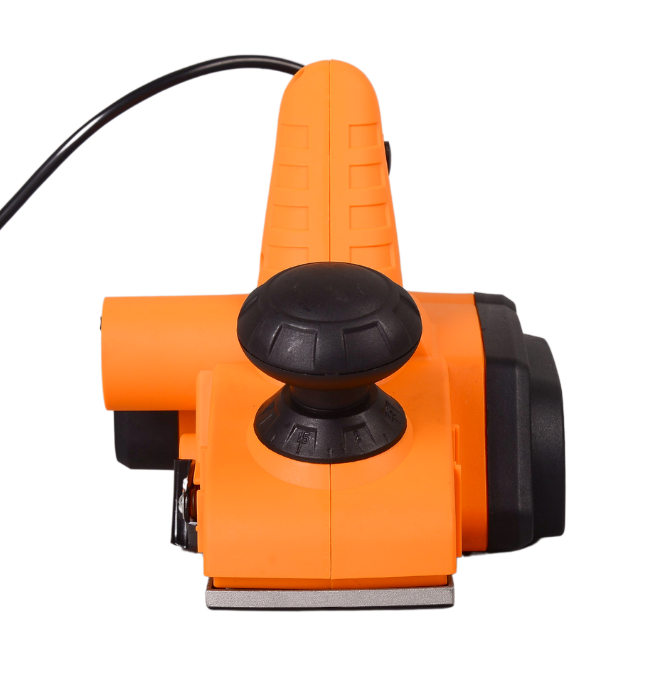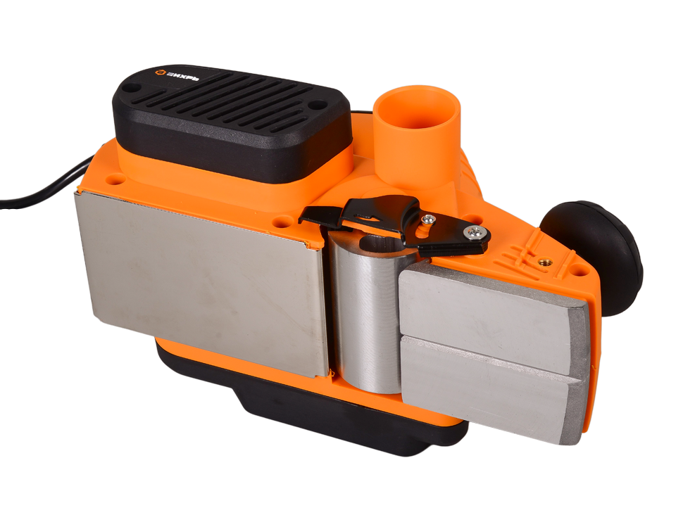 Для поддержания рабочего места в чистоте, инструмент оснащен патрубком для отвода пыли. С помощью широкой рукоятки можно не только крепко удерживать инструмент во время работы, но и регулировать глубину строгания от 0 до 3 мм. Для удобства работы продолжительное время на рукоятке предусмотрен фиксатор пусковой клавиши. Воздушное охлаждение исключает возможность перегрева в течение работы.