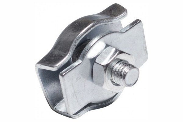 Зажим для канатов изготовлен из оцинкованной стали, предназначен для соединения тросов, канатов и изготовления перель на концах троса.