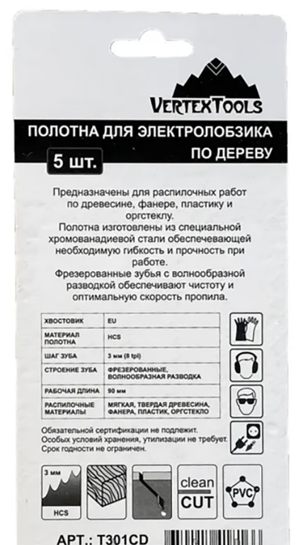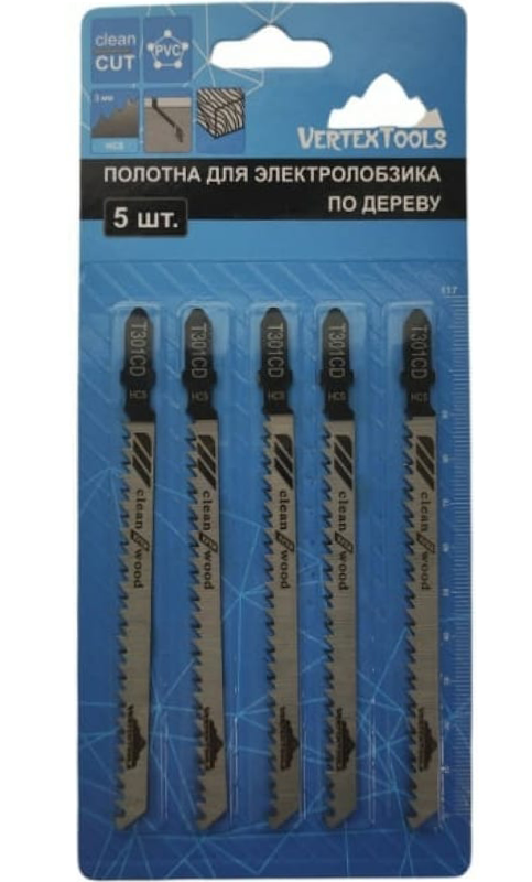 Полотна (5 шт.) для электролобзика Vertextools T301CD предназначены для распилочных работ по древесине, фанере, пластику и оргстеклу.