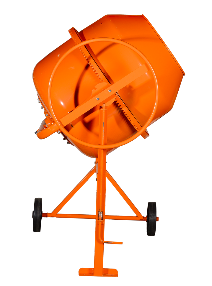 - Яркий цвет бетономешалки соответствует правилам СНИПа, которые предписывают окрашивание потенциально опасной техники в яркие цвета.